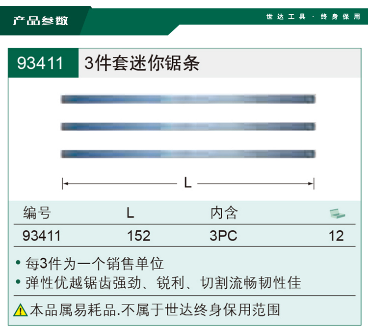 > 世达(SATA)3件迷你锯条 小钢锯多功能小手锯手工木工锯小锯子DIY手锯 93411 现货