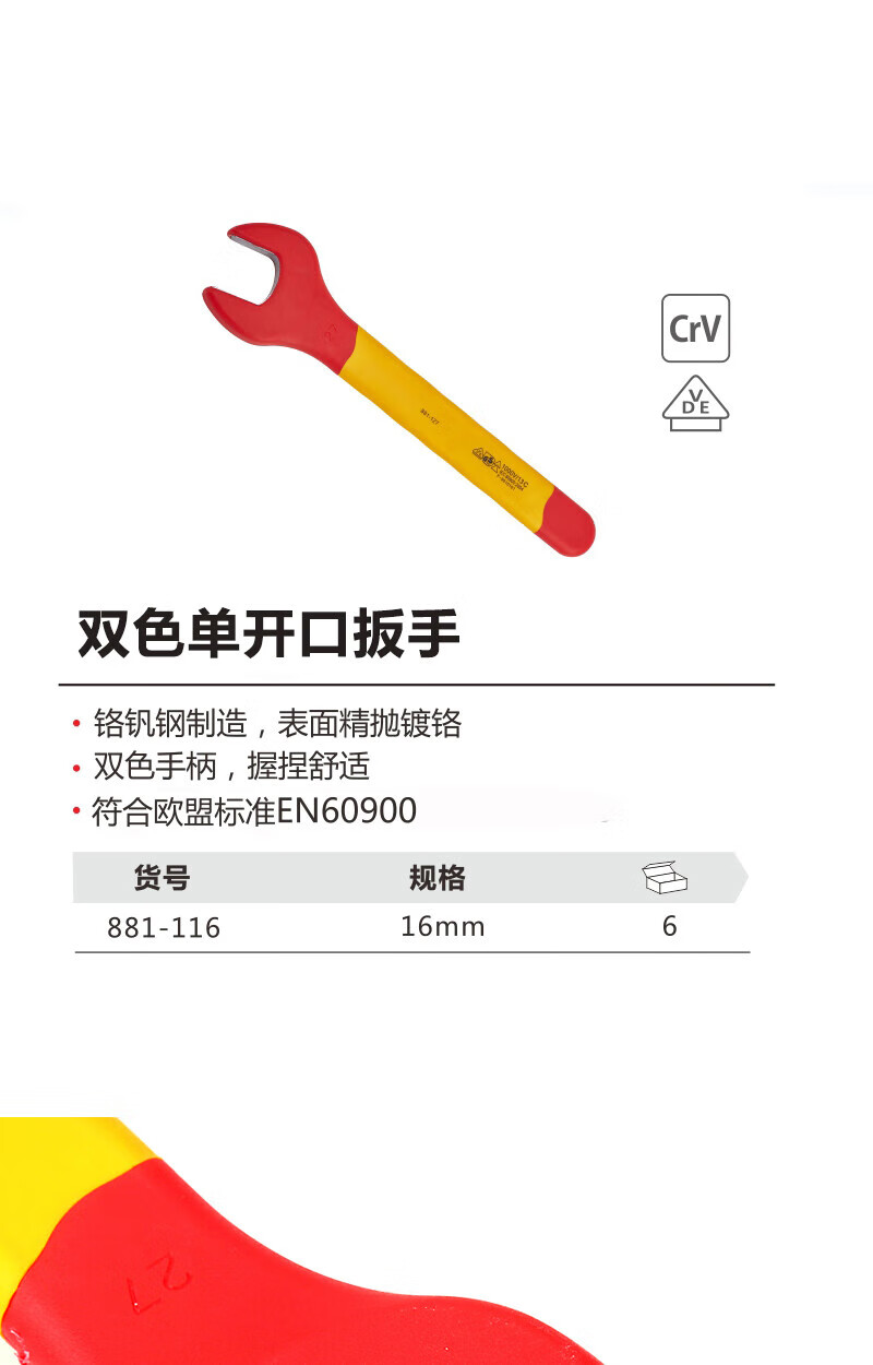 > 贝傅特 双色单开口扳手16mm 工业级手动紧固工具 881-116