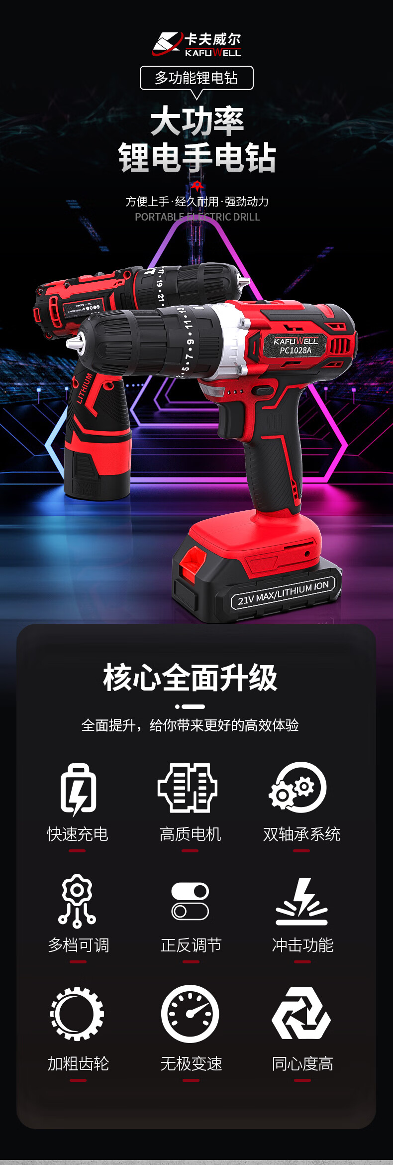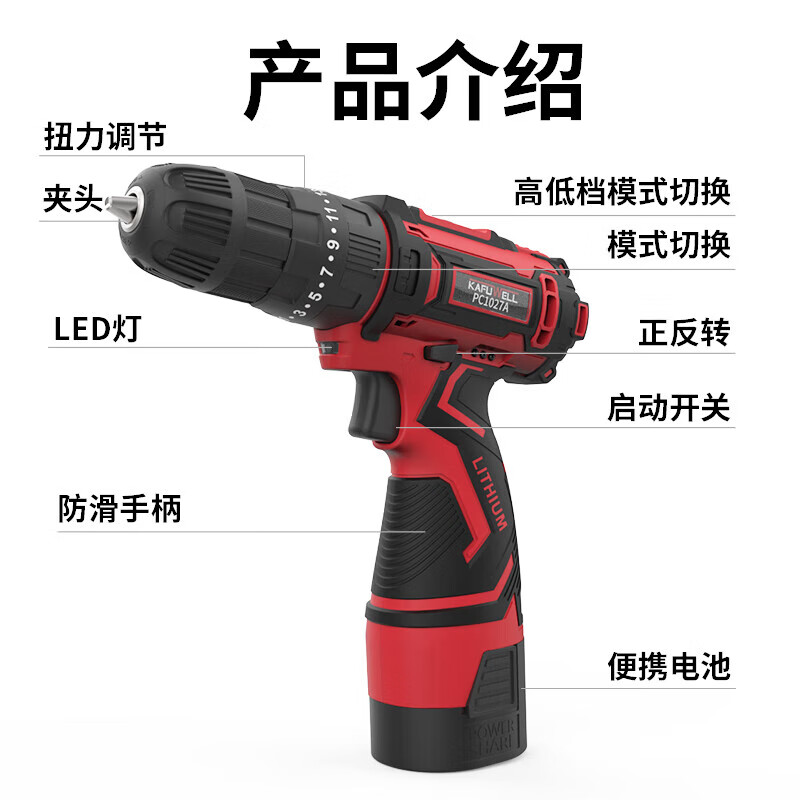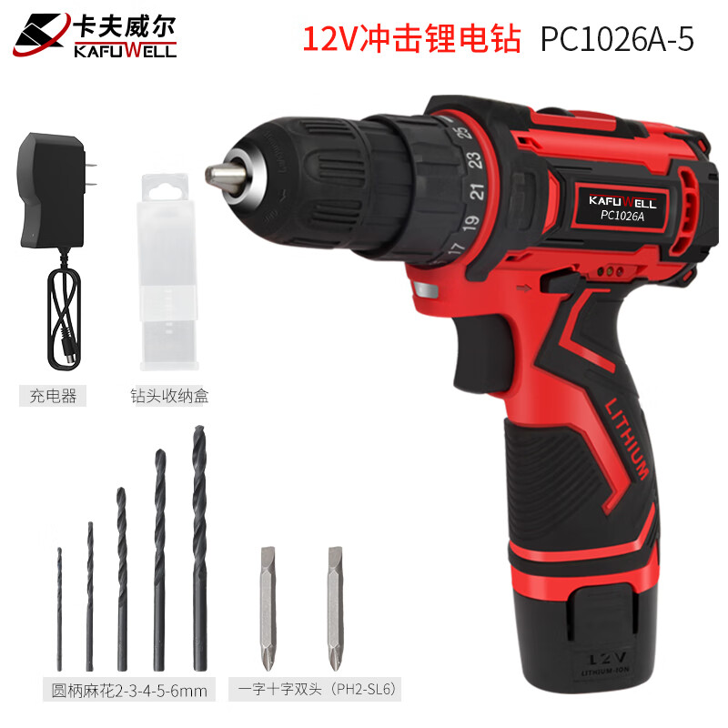 > 卡夫威尔12V锂电钻无线手钻电动螺丝刀充电起子家用电批 PC1026A-5