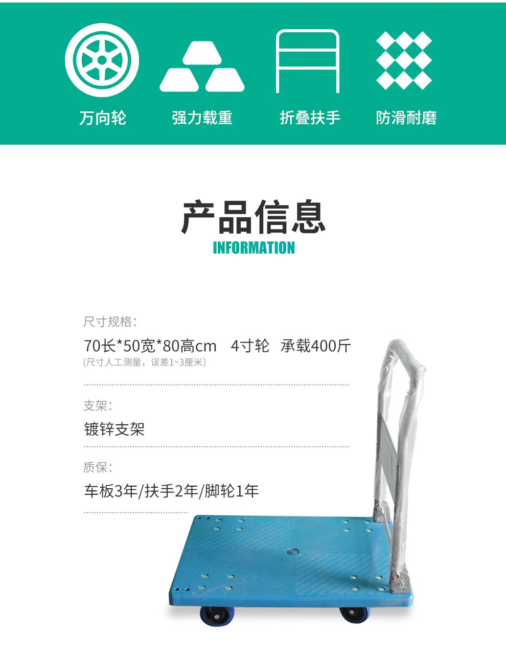 伊莱科(ELECALL)平板车手推车多功能组合式工具车折叠便携拉杆小推车 手推车 50*70cm 承重300斤