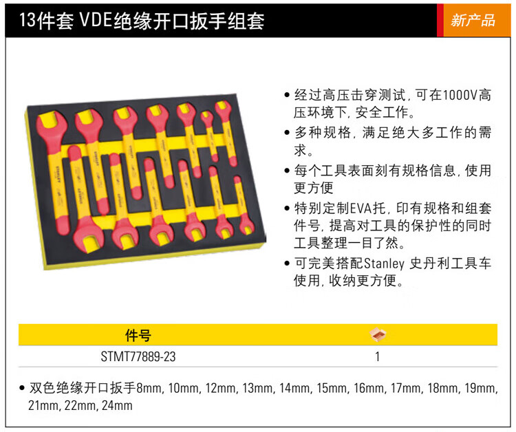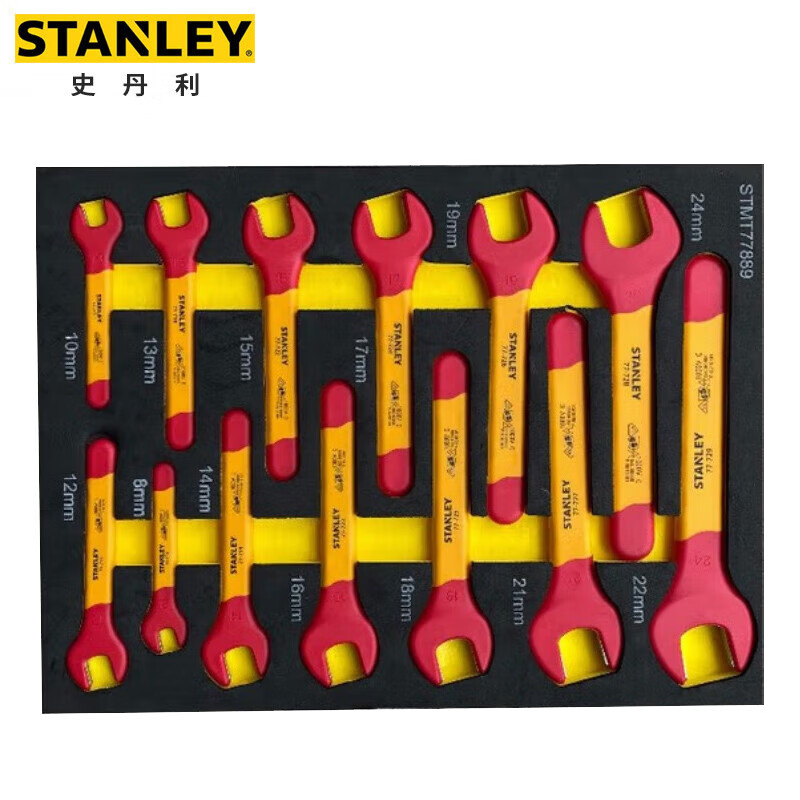 > 史丹利(STANLEY)13件套绝缘VDE开口扳手组套工具托套装STMT77889