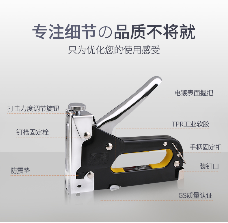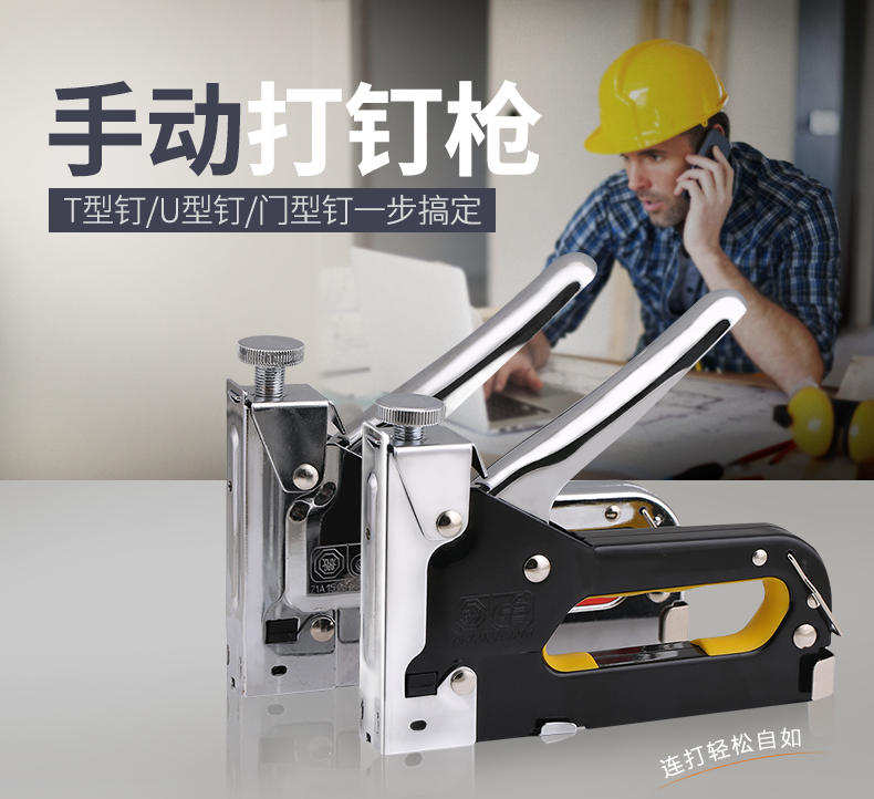 佰瑞特 三用打钉枪码钉枪手动射钉枪木工气钉马钉手钉U型钉枪线槽射钉器 电镀黑色款打钉枪+600枚枪钉