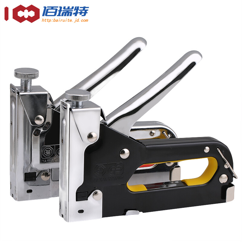 > 佰瑞特 三用打钉枪码钉枪手动射钉枪木工气钉马钉手钉U型钉枪线槽射钉器 电镀黑色款打钉枪+600枚枪钉
