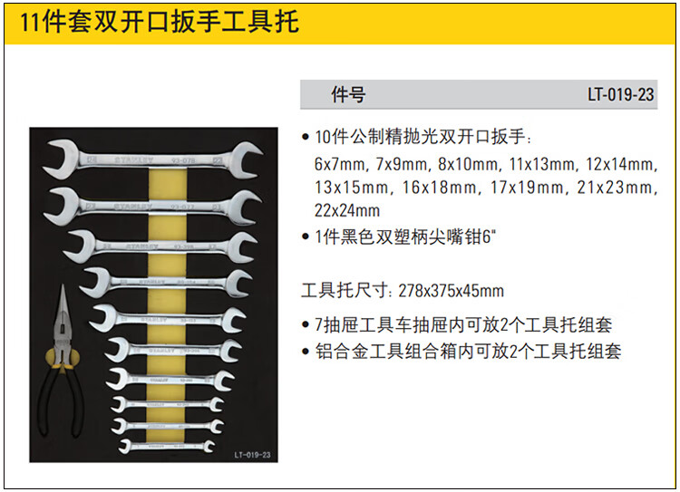 > 史丹利(STANLEY)LT-019-23 11件套双开口扳手工具托 汽修工具组合 机修手工具