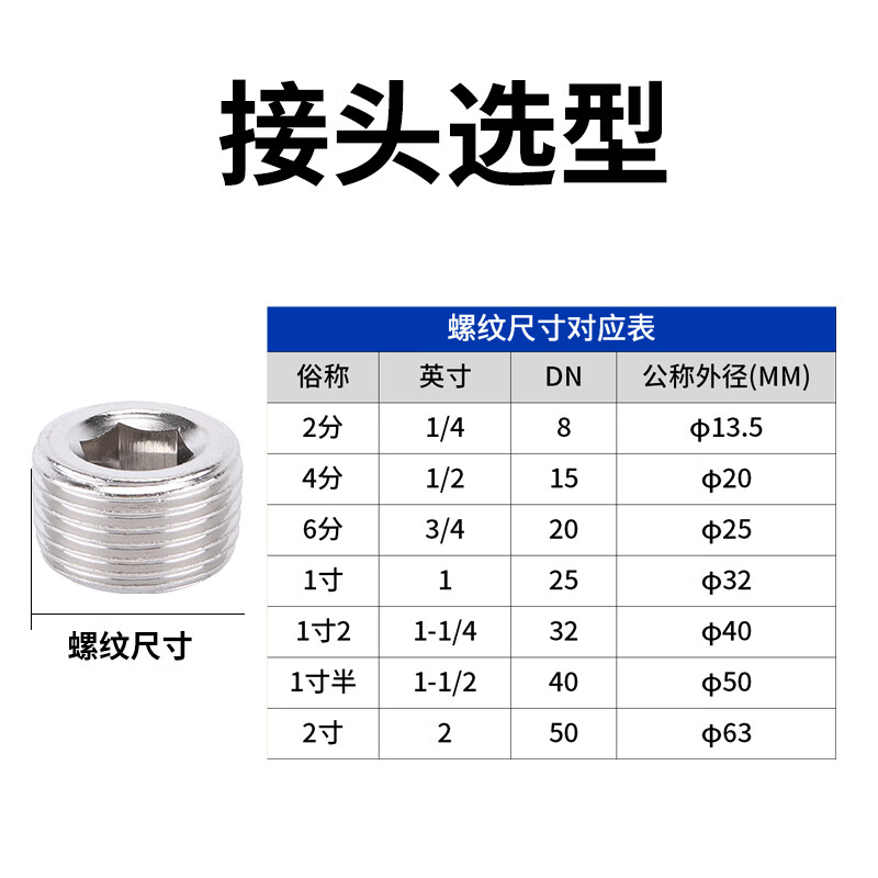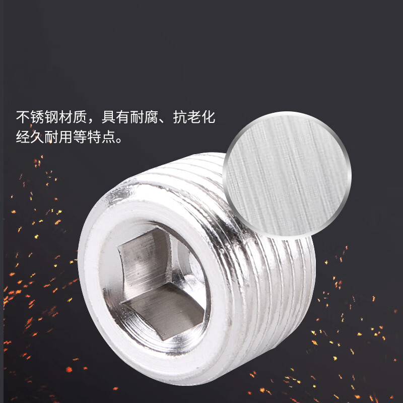 > 安达通 气动快速接头 气动不锈钢内丝接头堵头水管闷头丝堵内六角四分 不锈钢堵头1/2/4分