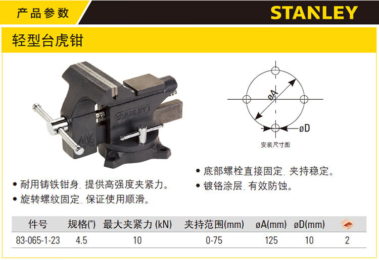 史丹利(STANLEY)83-068-2-23C 重型台虎钳6寸 工作台钳