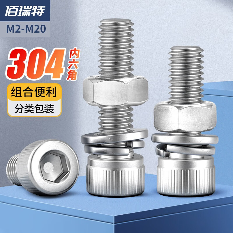 > 佰瑞特(bairuite)304不锈钢内六角螺丝螺母垫片套装加长圆柱头杯头螺栓螺丝钉大全 M8*60【5套】
