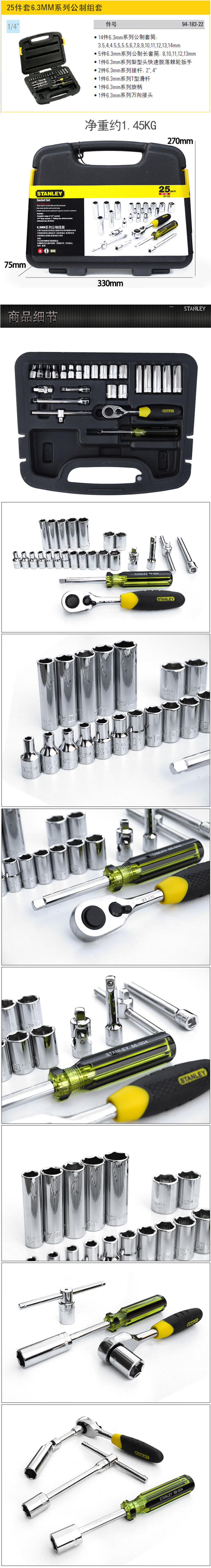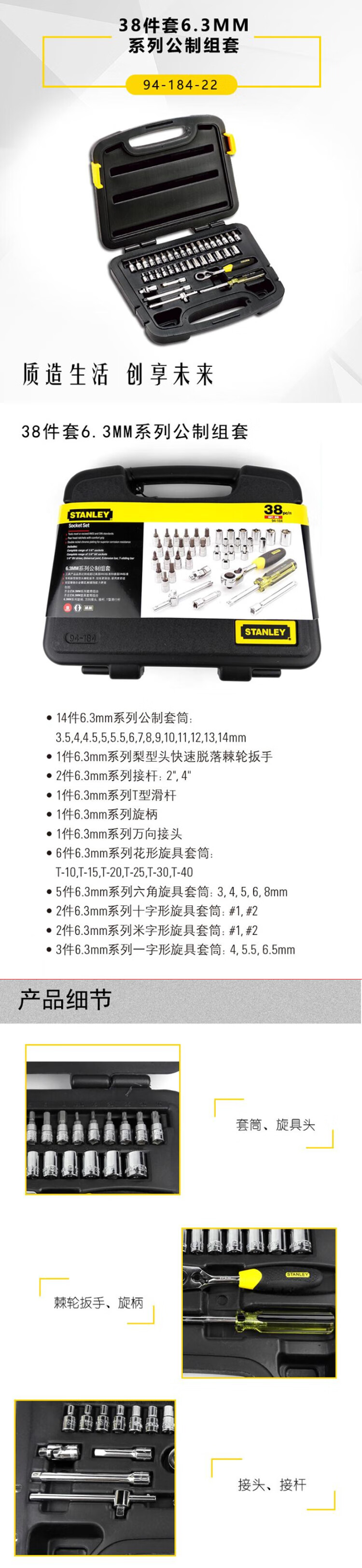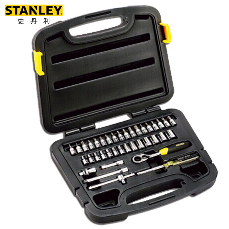 > 史丹利(STANLEY)38件套6.3MM系列公制组套机修汽修扳手套筒工具箱组合94-184