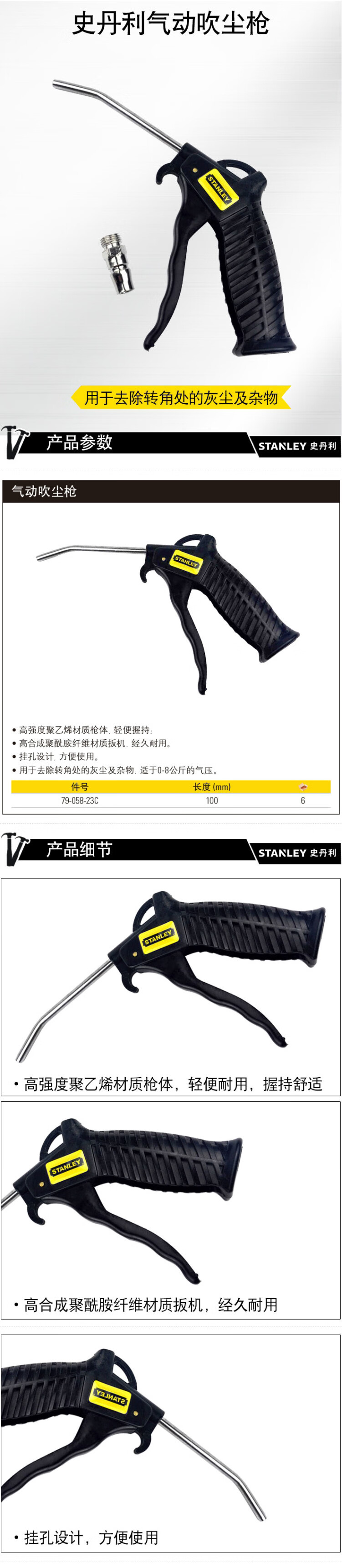 > 史丹利(STANLEY)气动吹尘枪100mm高压吹风除尘去灰吹尖枪气泵枪79-058-23C