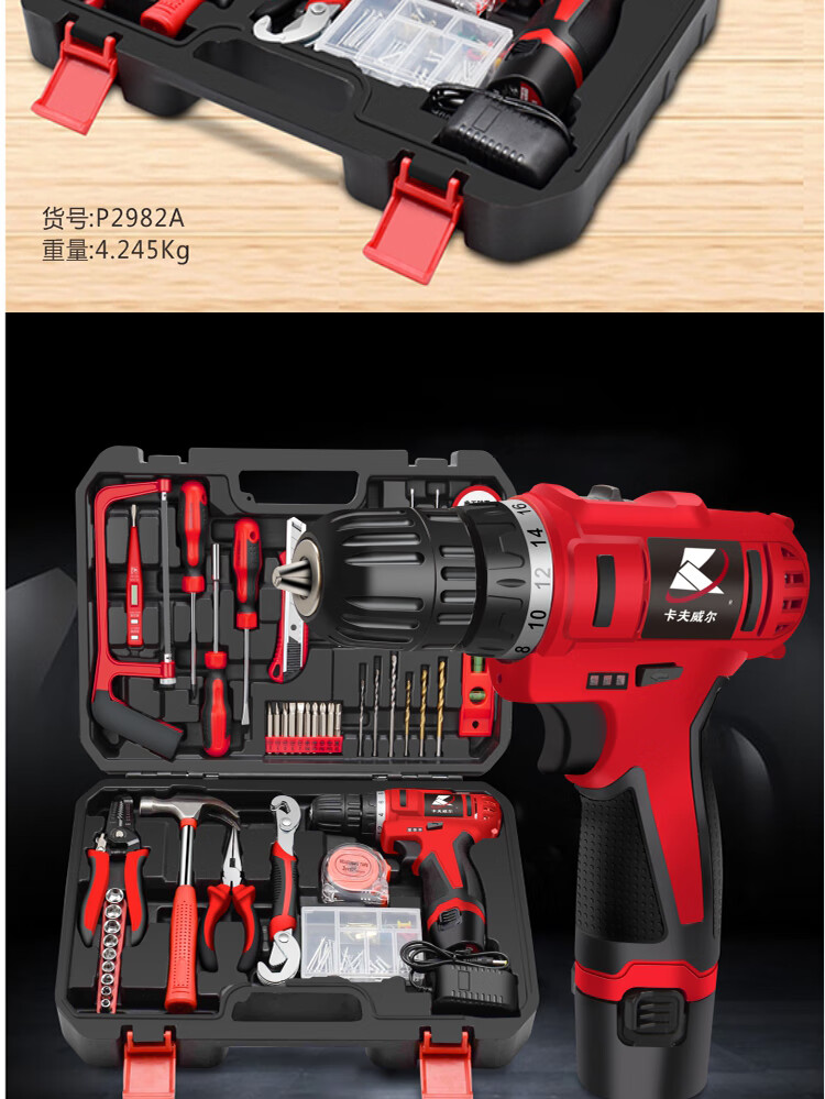 卡夫威尔 109件套家用手电钻工具箱套装充电电动螺丝刀电工维修 P2982A