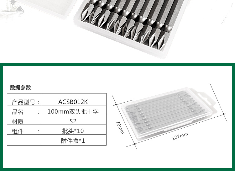 雷蒙 ACSB012K 双头批电动螺丝刀磁性批头100mmPH2 十支装
