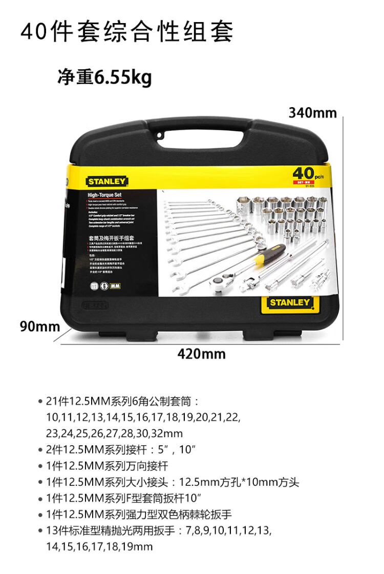 史丹利(STANLEY)91-935-1-22 40件套综合性组套 棘轮扳手套筒批头汽修工具