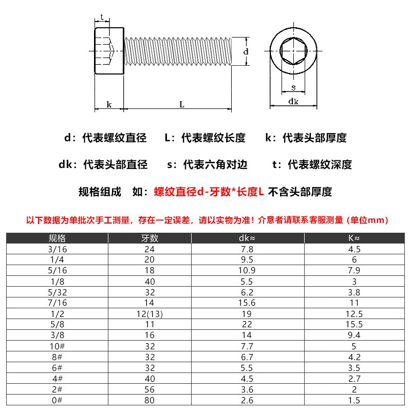 佰瑞特304不锈钢美制内六角螺丝钉UNC美标杯头内六角螺钉圆柱头螺栓加长 304美制内六角 4#-40*1/2【100粒】全牙