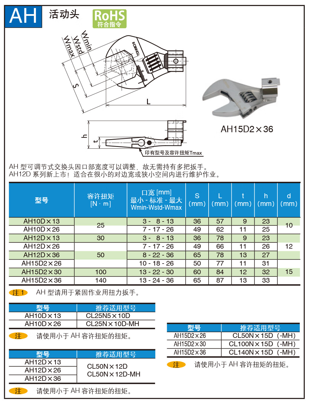 > TOHNICHI日本东日进口AH型可调式开口头 AH10DX13