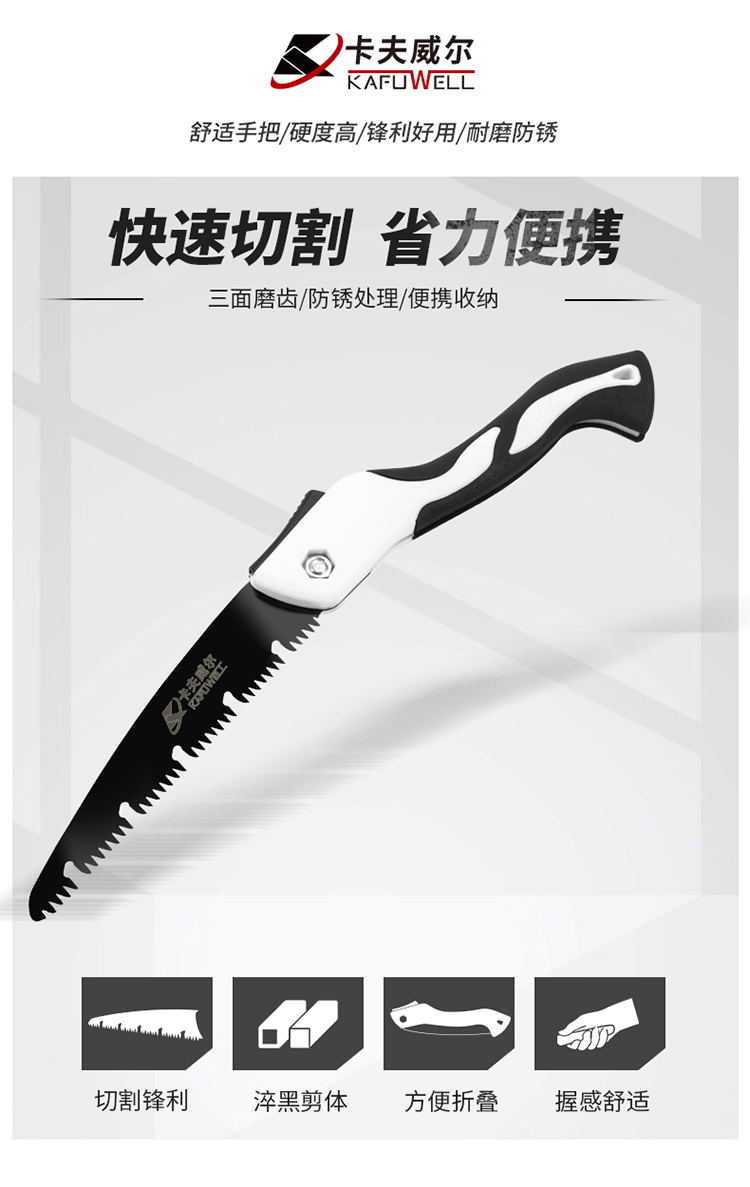 卡夫威尔 园林手锯子木工钢锯伐木果树枝木头锯折叠手工锯 7英寸 CU3905A