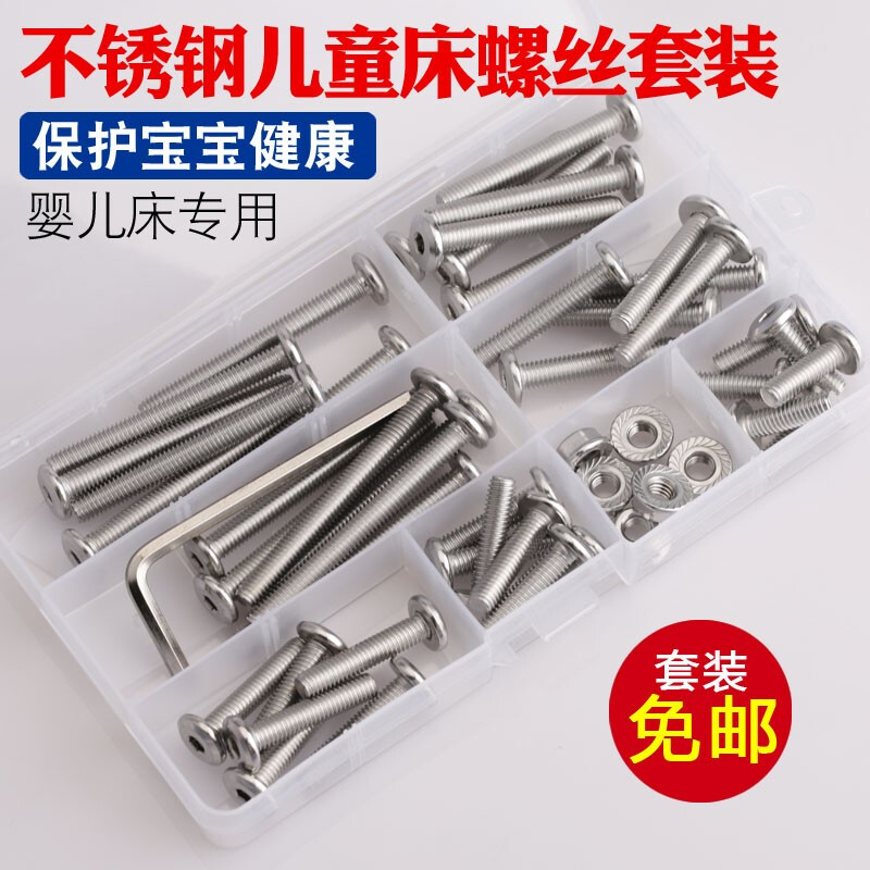 > 佰瑞特 304不锈钢碳钢家具五金螺丝 婴儿童床配件 螺母套装平圆头内六角十字斜平头螺丝倒边套装连接件 M6(304平圆头内六角套装)