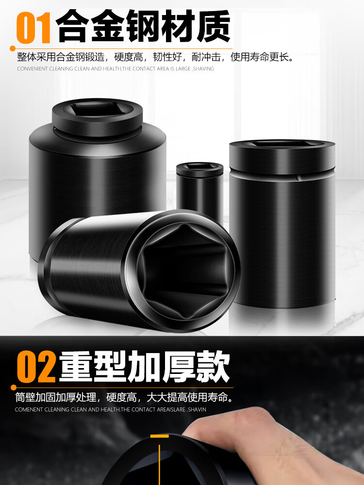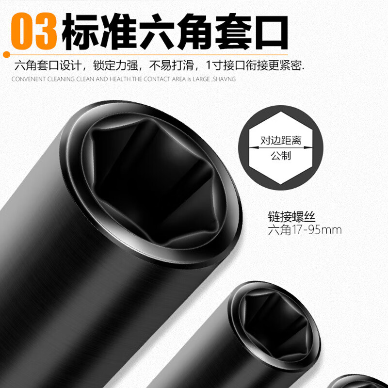 安达通 大风炮套筒 加长气动电动省力扳手重型六角货车轮胎筒套 1寸弯杆