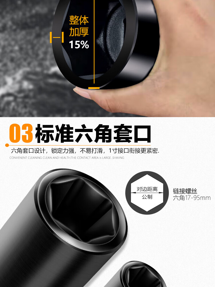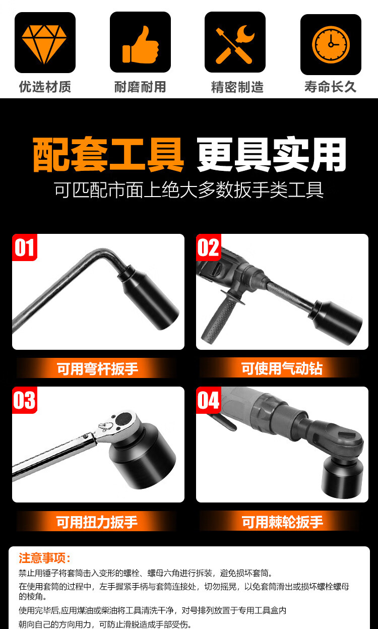 > 安达通 大风炮套筒 加长气动电动省力扳手重型六角货车轮胎筒套 1寸弯杆