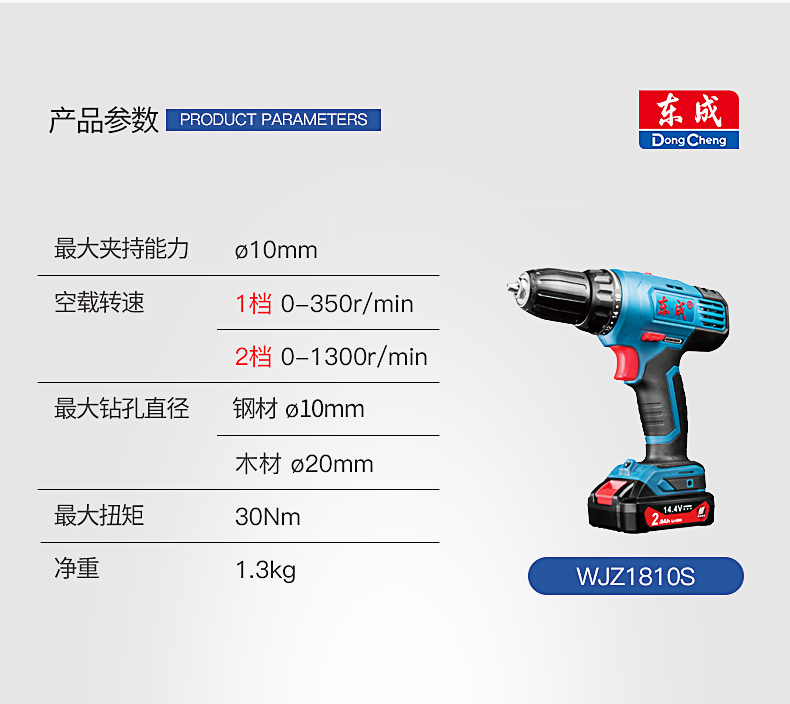 > 东成锂电钻WJZ1810S充电式起子机手电钻多功能套装14.4V电动螺丝刀