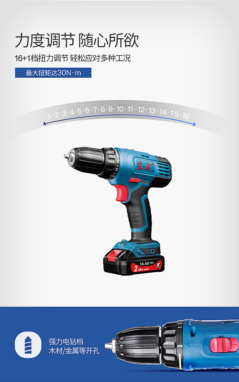 东成锂电钻WJZ1810S充电式起子机手电钻多功能套装14.4V电动螺丝刀