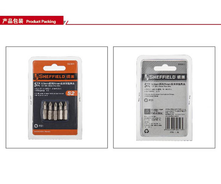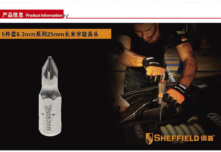 > 钢盾 SHEFFIELD S053012 5件套6.3mm系列25长米字旋具头PZ2
