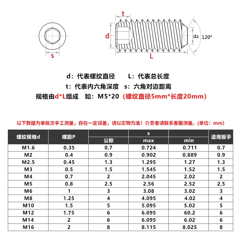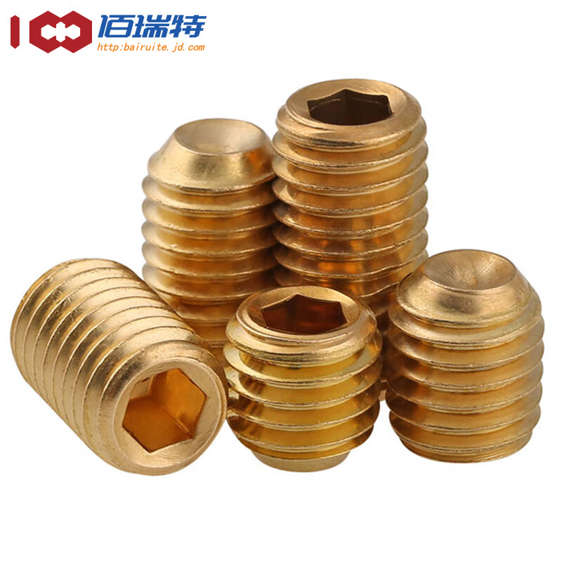 > 佰瑞特黄铜凹端内六角紧定螺丝钉铜无头基米机米顶丝螺栓止付螺钉DIN916 M4*16【30粒】