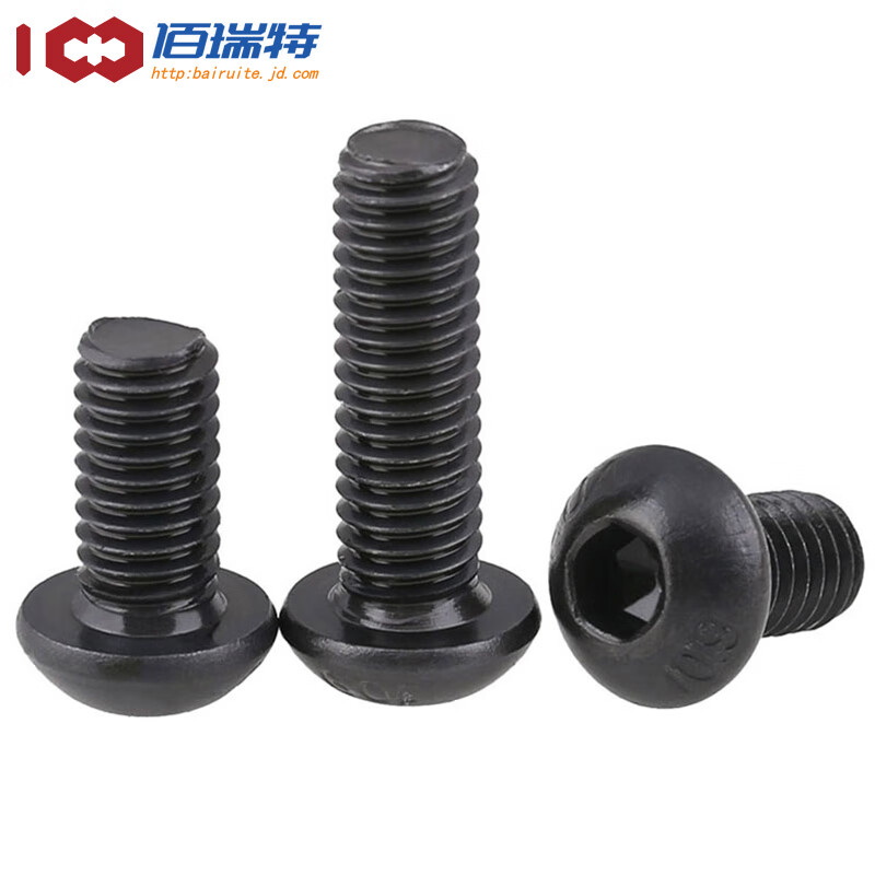> 佰瑞特10.9级高强度圆头内六角螺丝螺钉黑色半圆头盘头螺栓螺杆ISO7380 M5*10【60粒】