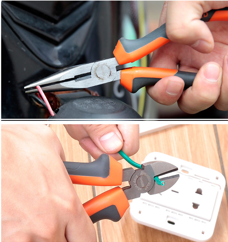 > 钢盾(SHEFFIELD)S045003 老虎钳钢丝钳6寸8寸尖嘴钳双色柄斜嘴钳斜口钳钳子SD S045001 双色柄6寸钢丝钳