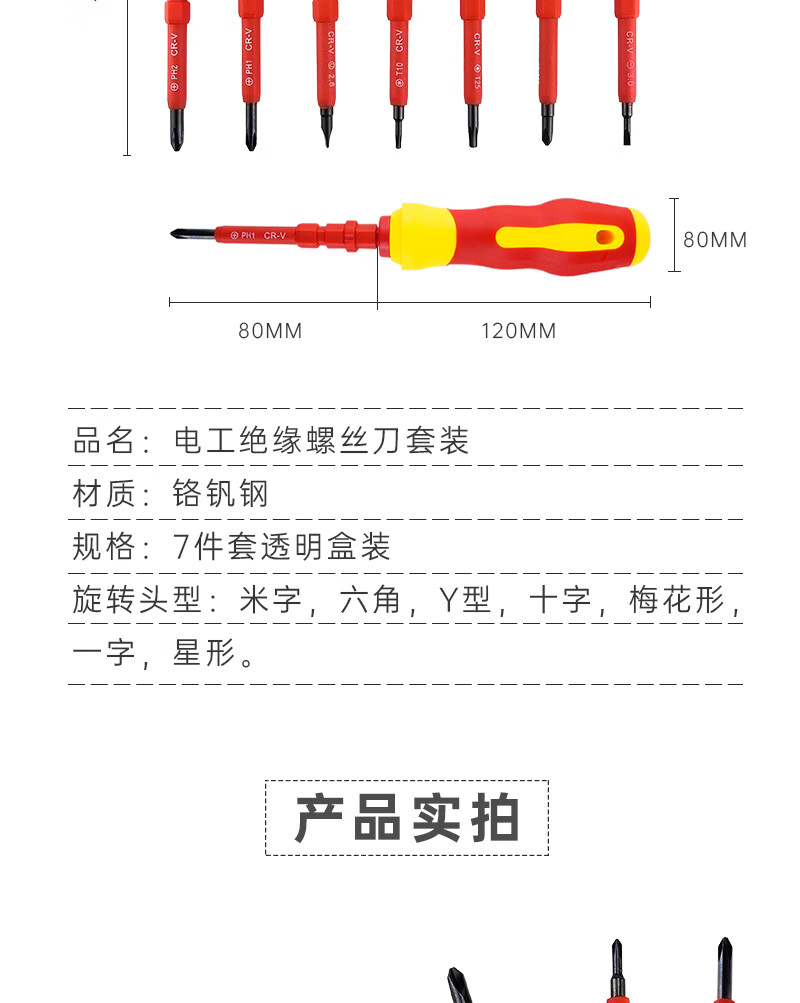 海斯迪克 HKsq-134 螺丝刀套装工具 螺丝批组套 电工绝缘白盒双用 7件套
