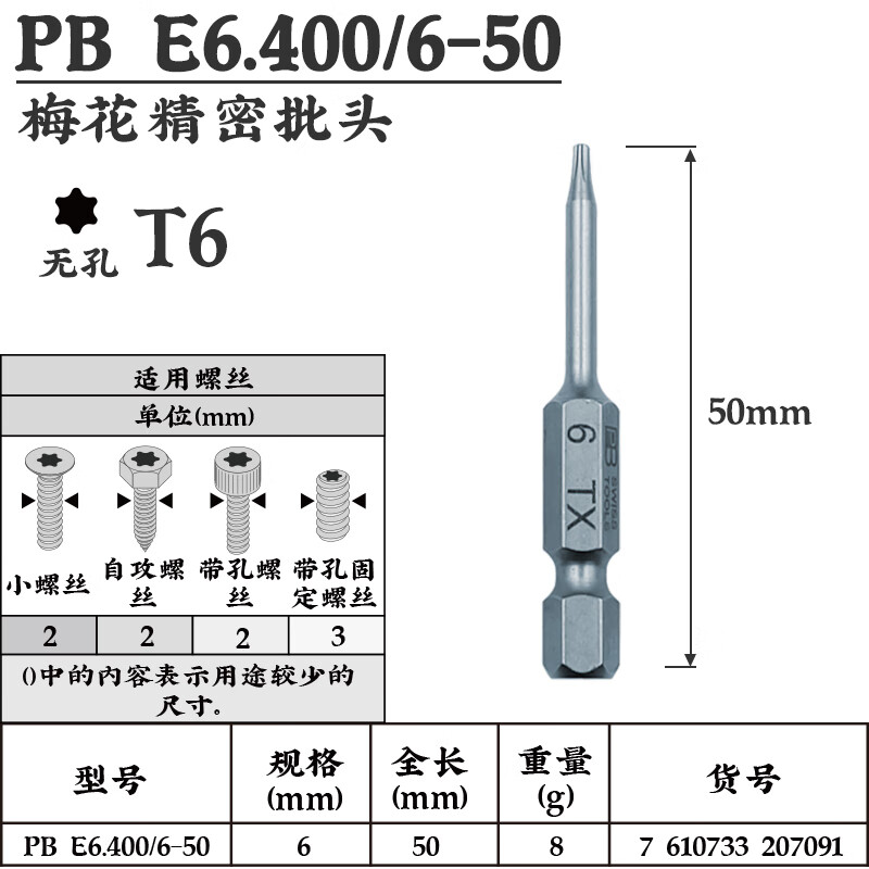 > PB SWISSTOOLS 瑞士原装进口梅花批头加长超硬E6.400 PB E6.400/6-50