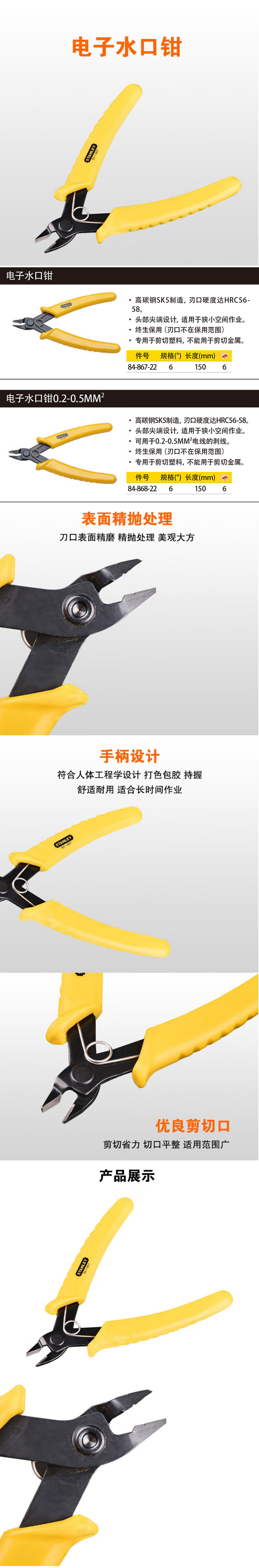 > 史丹利(STANLEY)电子水口钳6英寸电子电工修理剪线钳斜口钳84-867