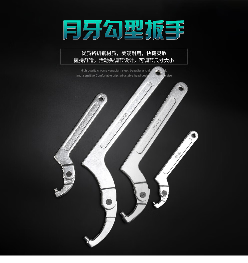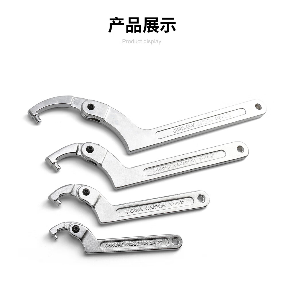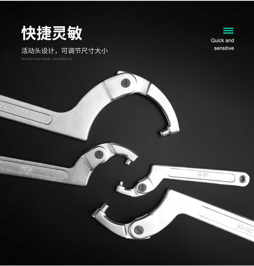 伊莱科(ELECALL) 月牙扳手勾型活络扳手油缸半圆绞牙半圆形螺母扳手可调节工具 3/4-2寸圆螺母可调扳手19-51