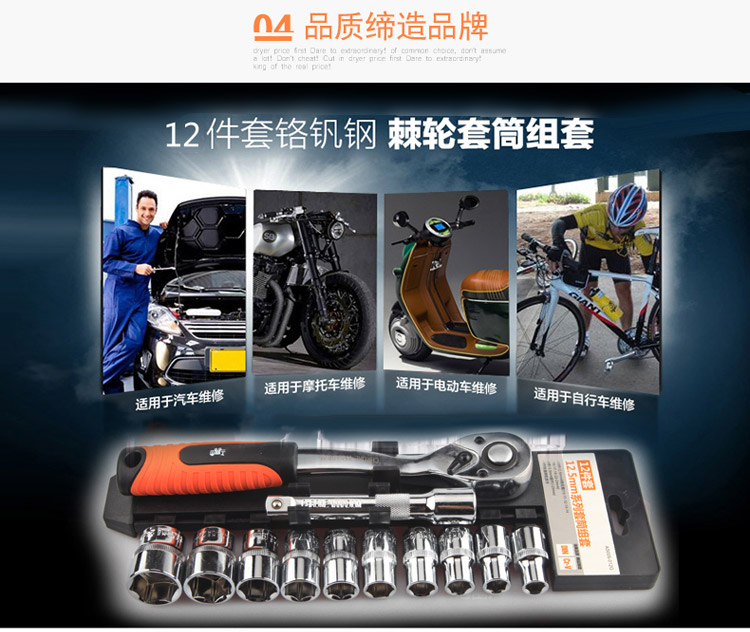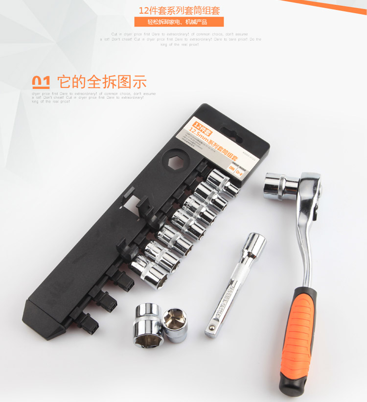 > 工蜂12.5mm系列汽修套筒快速棘轮扳手组套 12件12.5mm棘轮扳手
