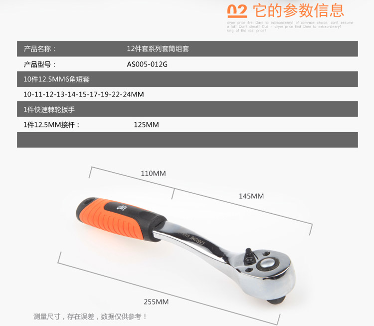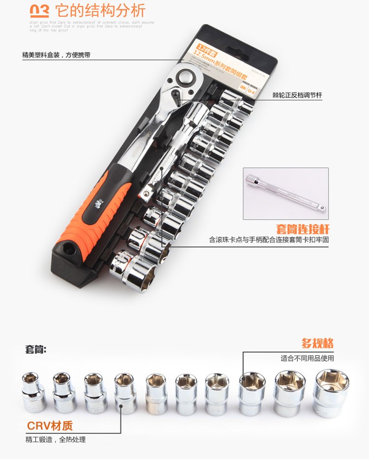 工蜂12.5mm系列汽修套筒快速棘轮扳手组套 12件12.5mm棘轮扳手