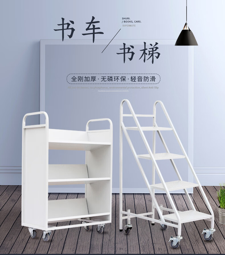 > 斯铂格 三层V型书车 白色款带万向轮图书馆轻音书车档案室专用移动小推车登高梯多功能工具车