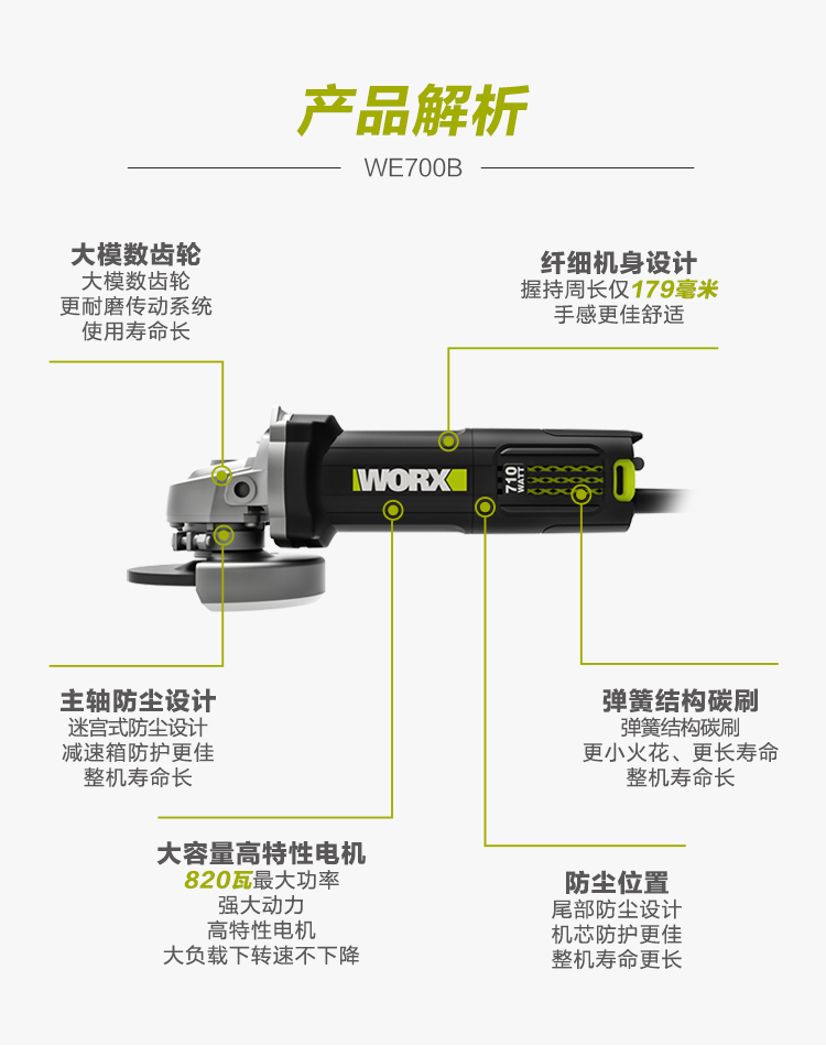> 威克士(WORX)角磨机WE700B 切割机打磨机抛光机开槽机磨光机手磨机砂轮机多功能五金电动工具