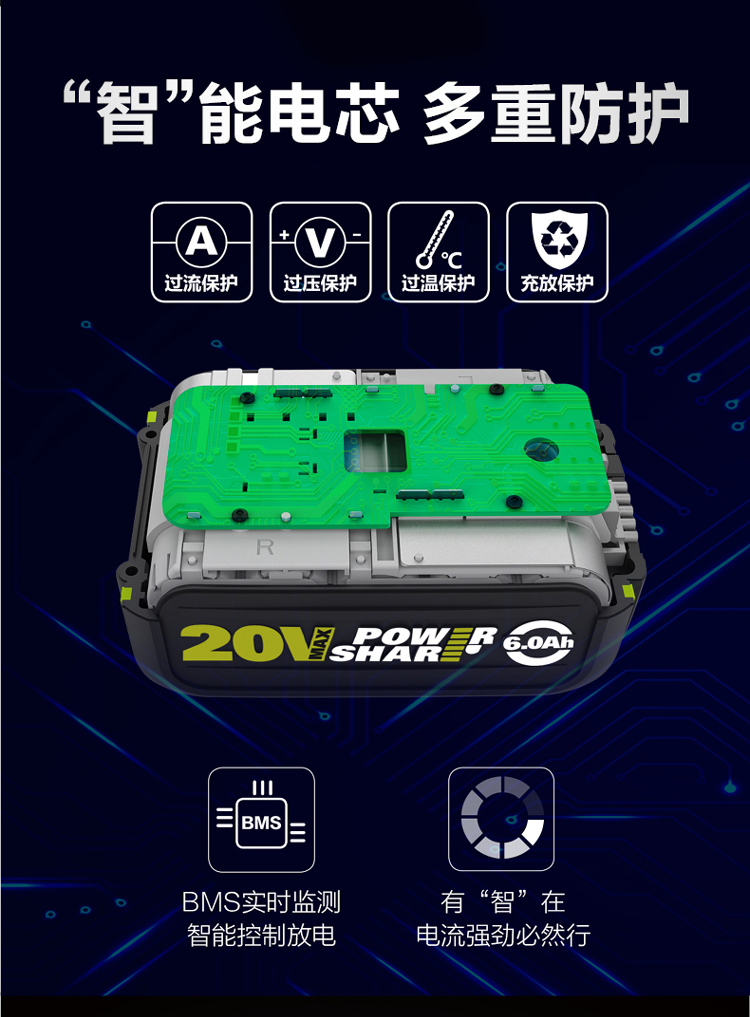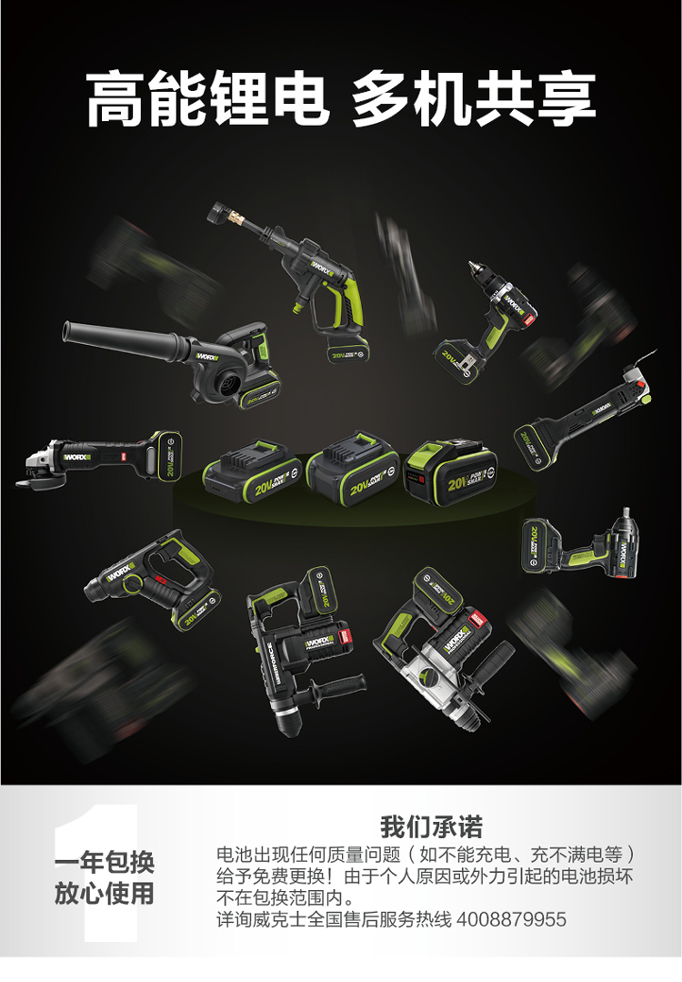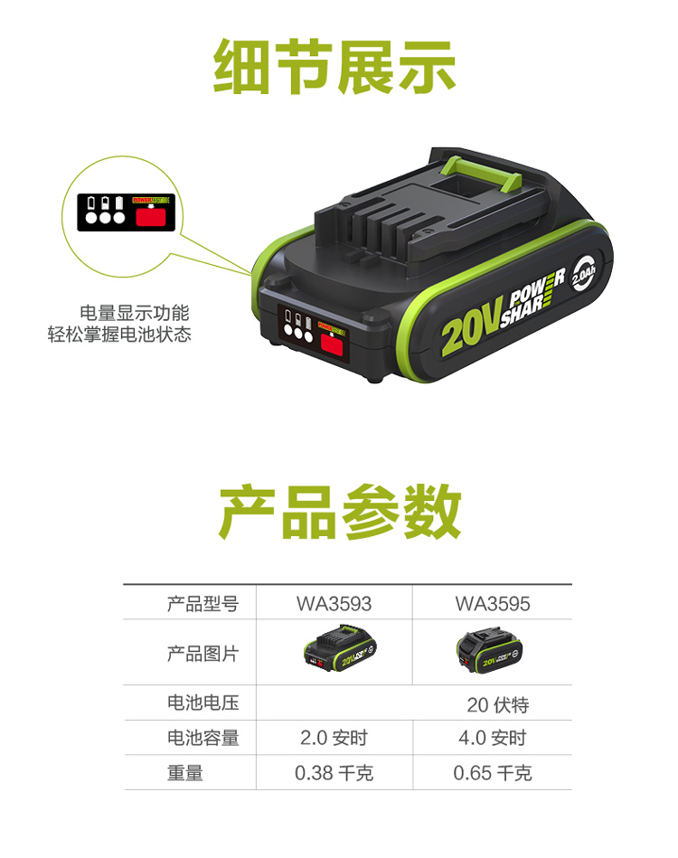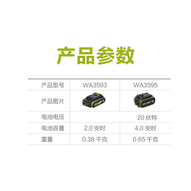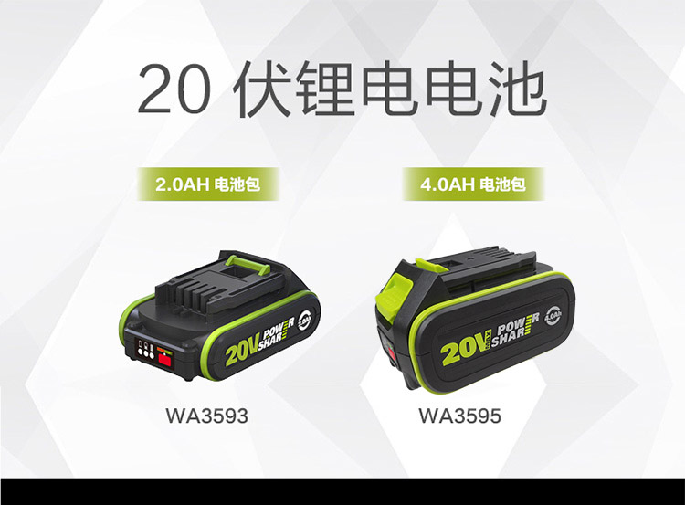 > 威克士(WORX)20V进口锂电4.0Ah电池包 WA3595 通用WORX锂电平台大脚板电动工具
