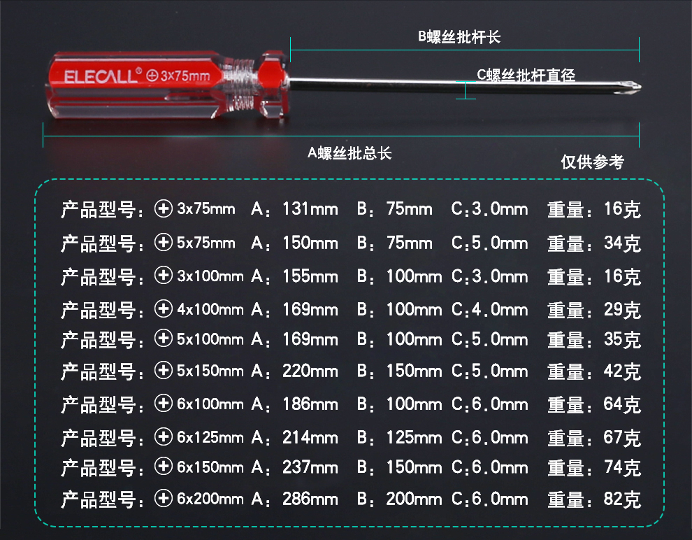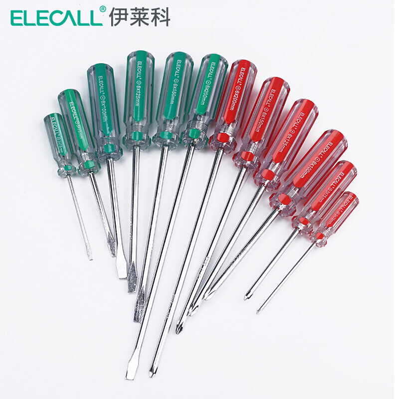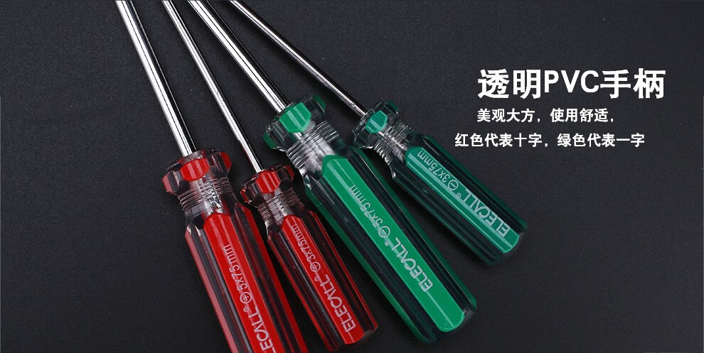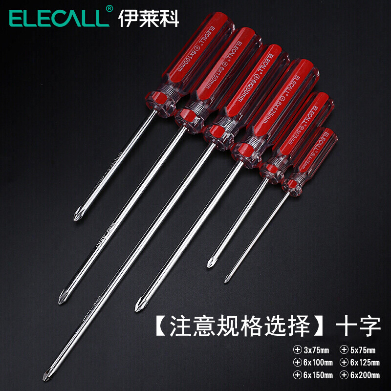 > 伊莱科(ELECALL)彩条带磁性十字一字螺丝批电工螺丝刀套装散卖五金工具 红色(十字单把) 3*75