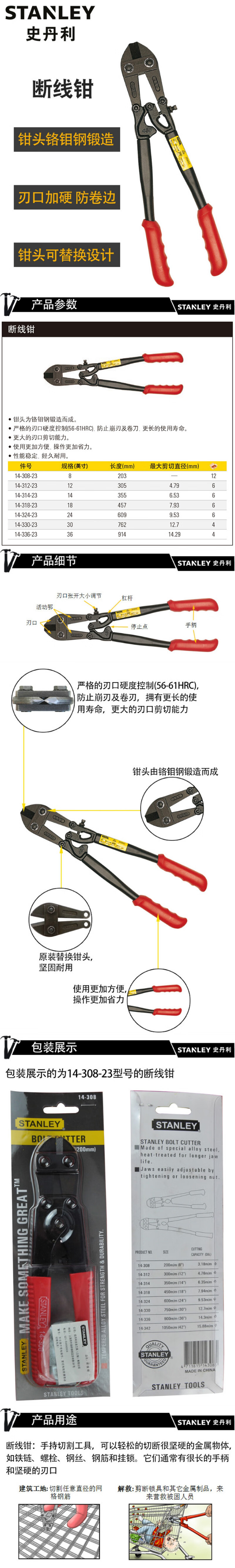 > 史丹利(STANLEY)断线钳14英寸大力钳电缆钳钢筋剪钢丝钳鹰嘴剪断丝剪14-314-23