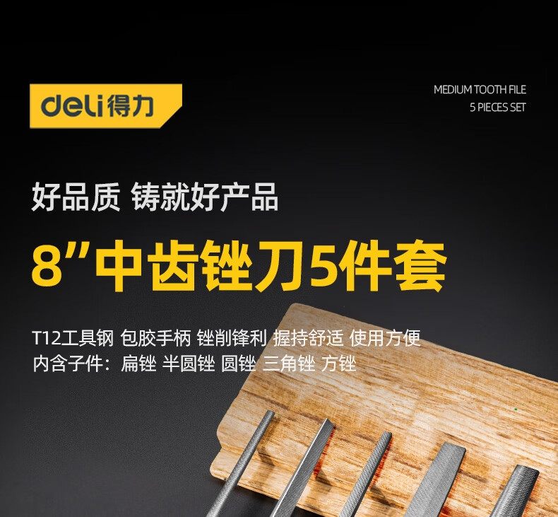 得力(deli) 中齿锉刀组套 整形锉刀什锦锉打磨工具5件套8英寸DL352085 4J00083