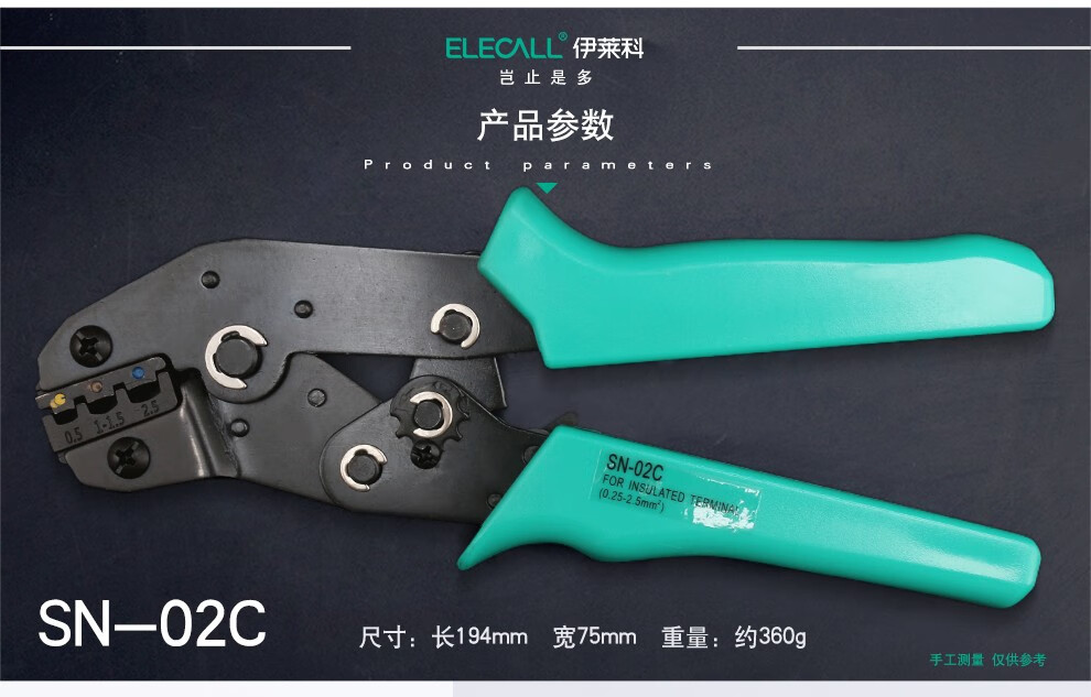 > 伊莱科(ELECALL)电工冷压端子钳棘轮式端子钳压接钳多功能压线钳夹线钳钳子 SN-06WF管型端子压线钳0.25-6mm