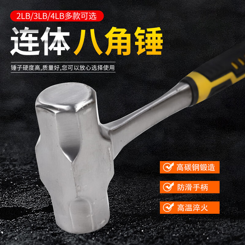 > 贝傅特 连体八角锤 不掉头一体锤子多功能重型维修工具防震八角榔头实心铁锤 QS-减震柄连体八角锤4LB