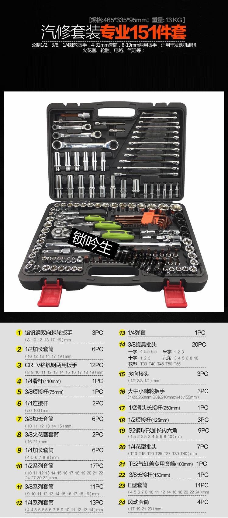 汽车工具箱套装套筒扳手棘轮扳手套装汽修汽保工具套装组套汽车五金合组套工具箱 82件套促销款
