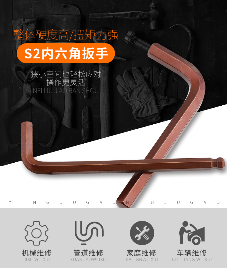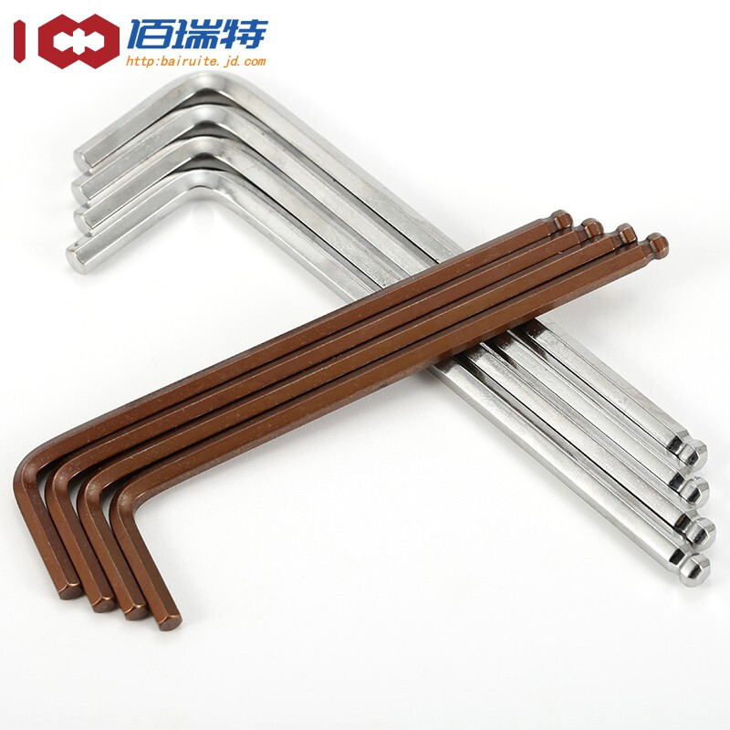 > 佰瑞特 内六角扳手单个S2合金钢加长球头平头六角匙 不锈钢内六方六棱角扳手套装 超硬工业级六棱扳手 304不锈钢【普长平头M6.0】2支