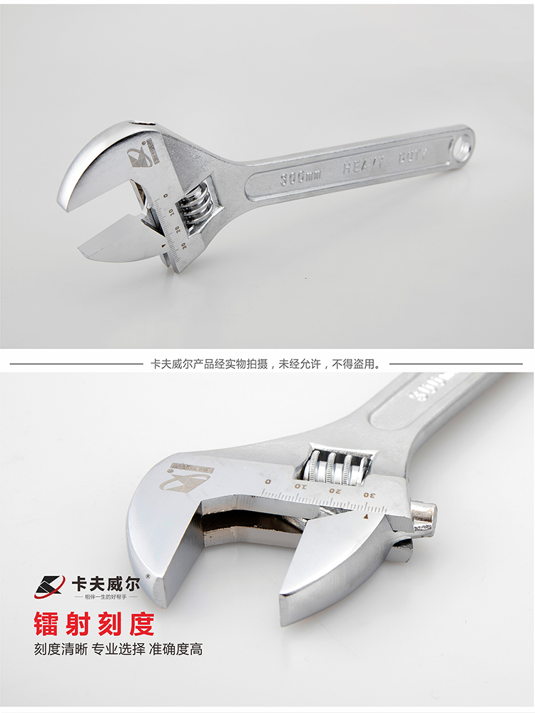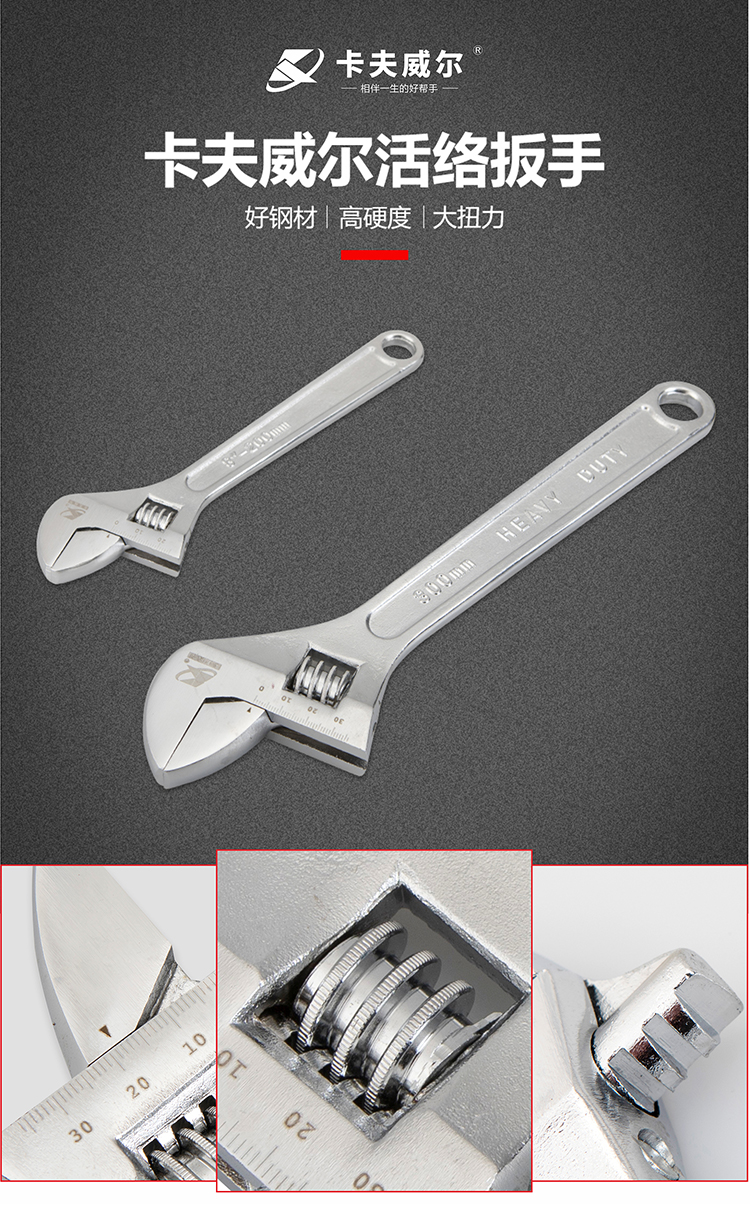 卡夫威尔 8寸活动扳手活口卫浴活络扳子 大开口管钳扳手200mm WR4108D