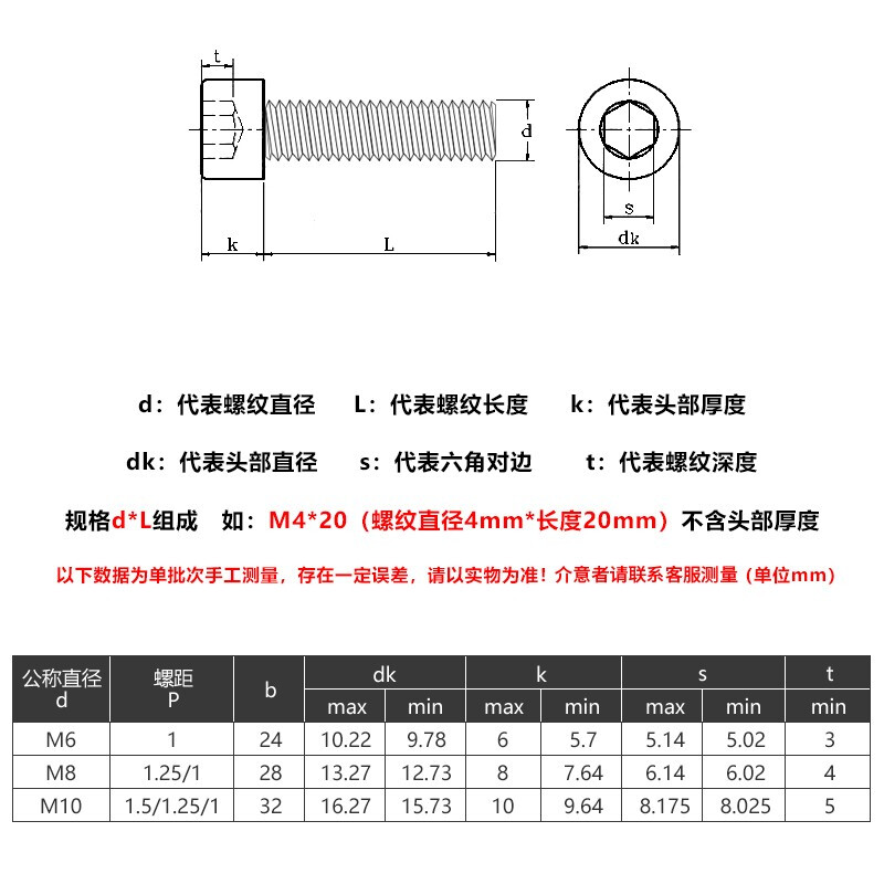 佰瑞特304不锈钢细牙内六角螺丝幼牙杯头圆柱头螺栓加长细扣螺钉DIN912 M12*1.5x20【2粒】