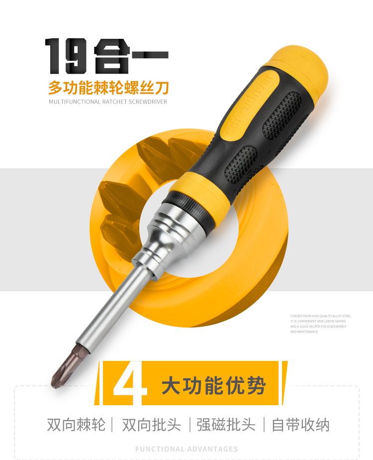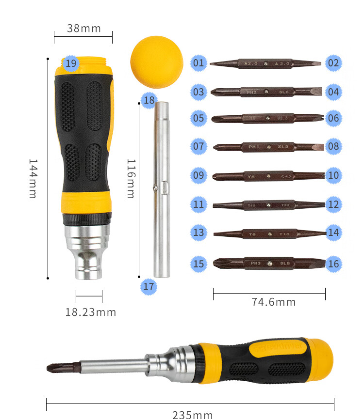 > 海斯迪克 HKDP-12 十字一字三角形梅花异形组合起子批头 多功能棘轮螺丝刀 19合一套装
