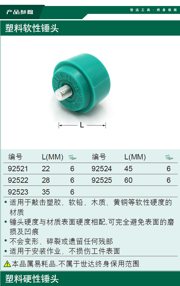 > 世达(SATA) 塑料软性锤头28MM 92522 现货