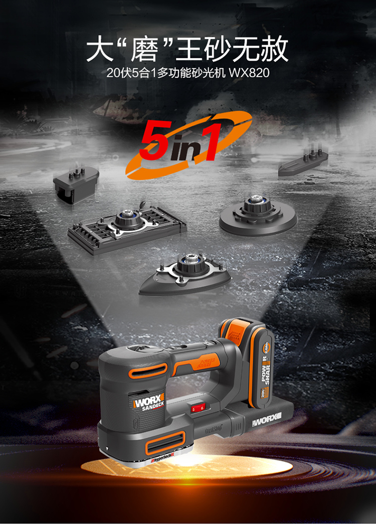 威克士(WORX)家用多功能砂光机WX820木工砂纸机木材砂磨机金属抛光机腻子打磨机五金电动打磨工具