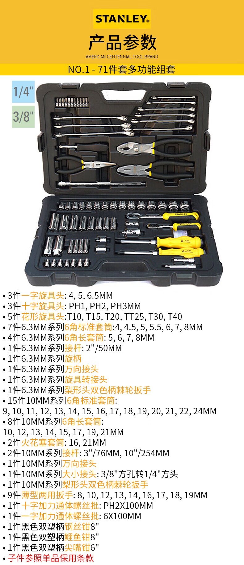 史丹利(STANLEY)STMT74394-8-23 71件多功能工具组套 汽修汽保套装